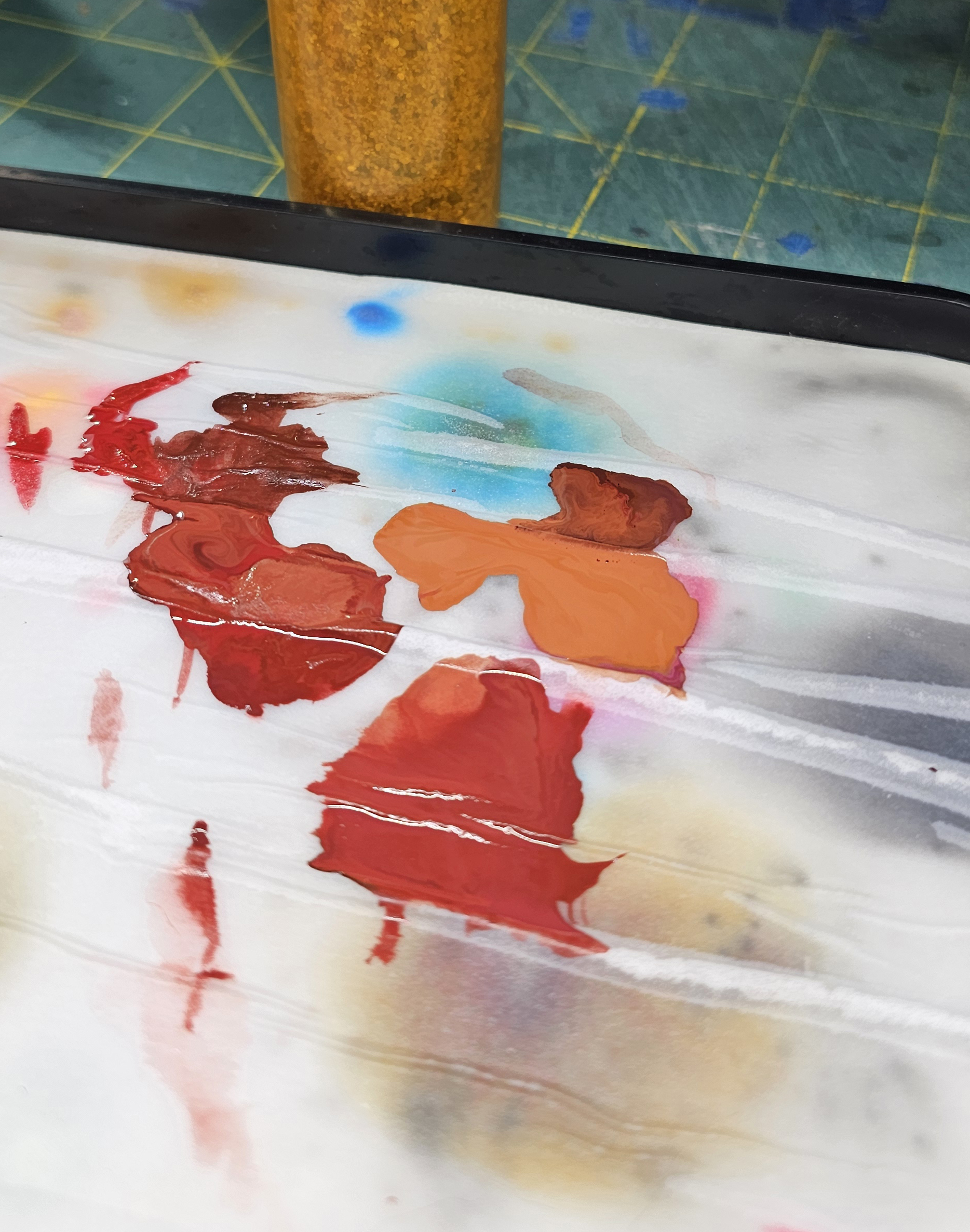 Spent last night finishing the fur on Charlemagne. Here are the colors I ended up using and the blends on my wet palette: