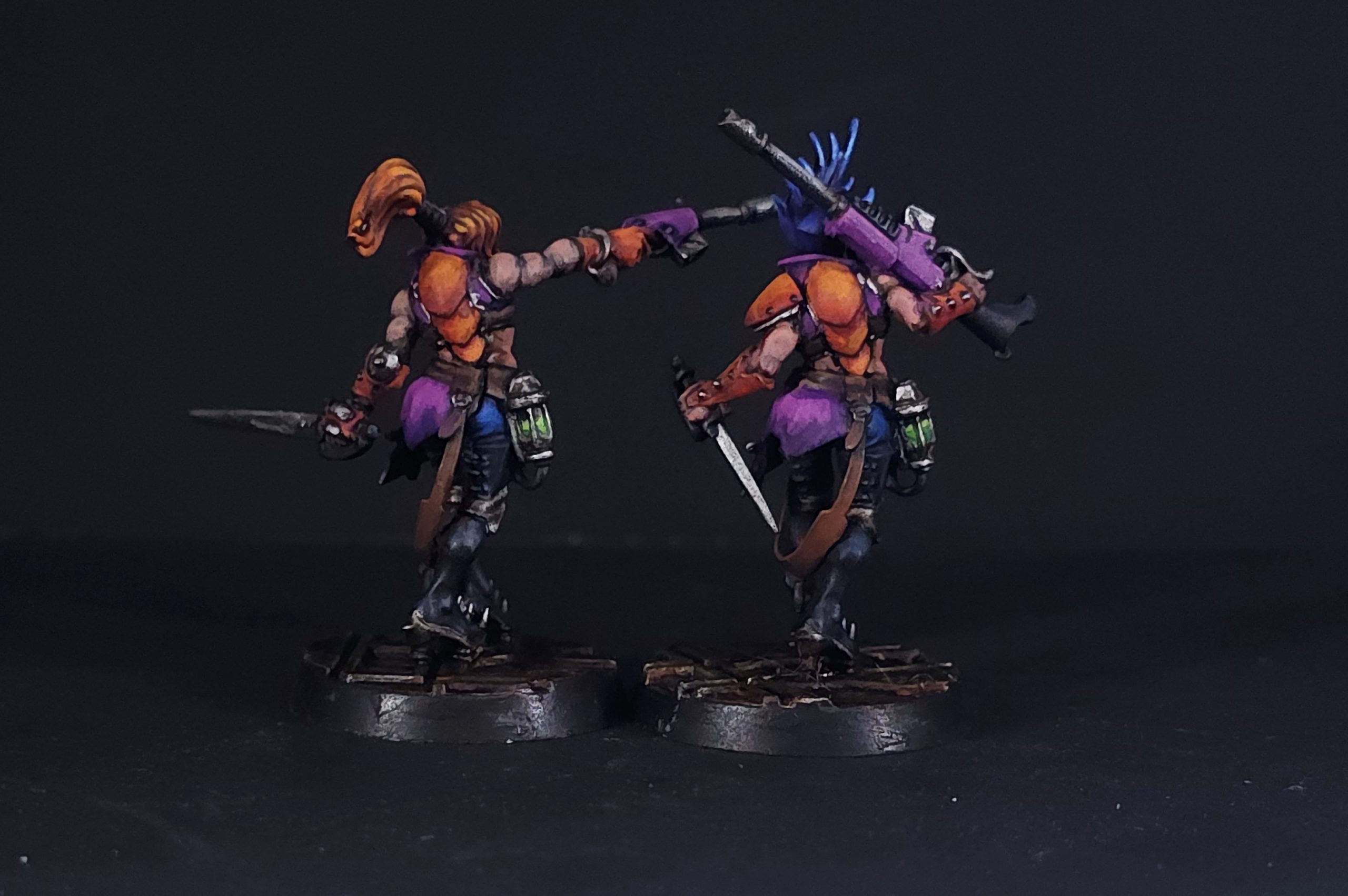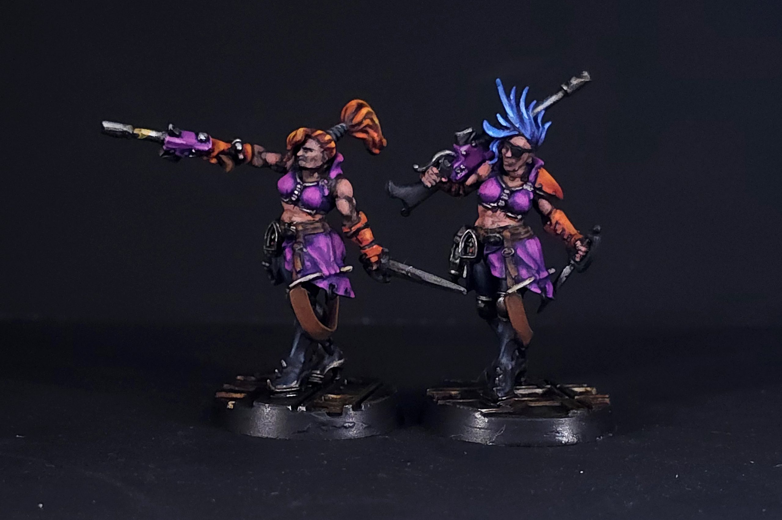 The Necromunda Escher Gang test models finished up ok. I like how the color scheme looks and feel pretty good about how I want to move forward with the rest of the gang. I’m still a little frustrated with how not-quickly I’m regaining my painting muscle memory and skills I used to have. Brush control and blending are my two biggest hurdles at the moment. But I also need to remember when I was at my “peak” before, I had painted literally 400+ miniatures and didn’t really give it a thought about how I had achieved that, or how quickly it went away. Not that I’m mad, just a bit frustrated.