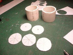 I cut the three disks into pie shapes and then cut the tips of each off. Things get really tight at the center of the turbine if you don’t do this. Trying to stack 12 layers of plastic in the middle of the circle will only cause problems so away they go. We’ll be covering this part with bullety shaped part anyway.